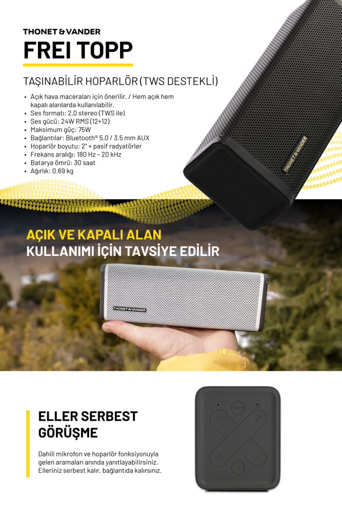 Frei Topp 24W RMS Taşınabilir Bluetooth TWS 30 Saat Dinleme Süresi - Piano Black Renk