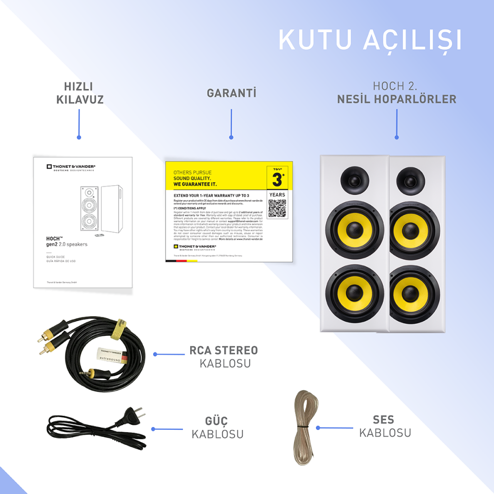 Hoch™ 120W RMS Hoparlör 2.0 Sinema Bluetooh 5.3 RCA Optik Uzaktan Kumanda Beyaz Renk