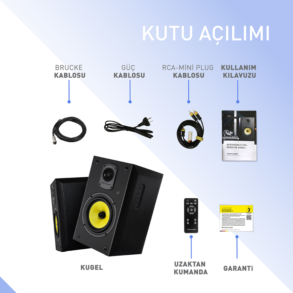 Kugel 140W RMS Hoparlör 2.0 Sinema Bluetooh 4.2 RCA Optik Uzaktan Kumanda Beyaz Renk
