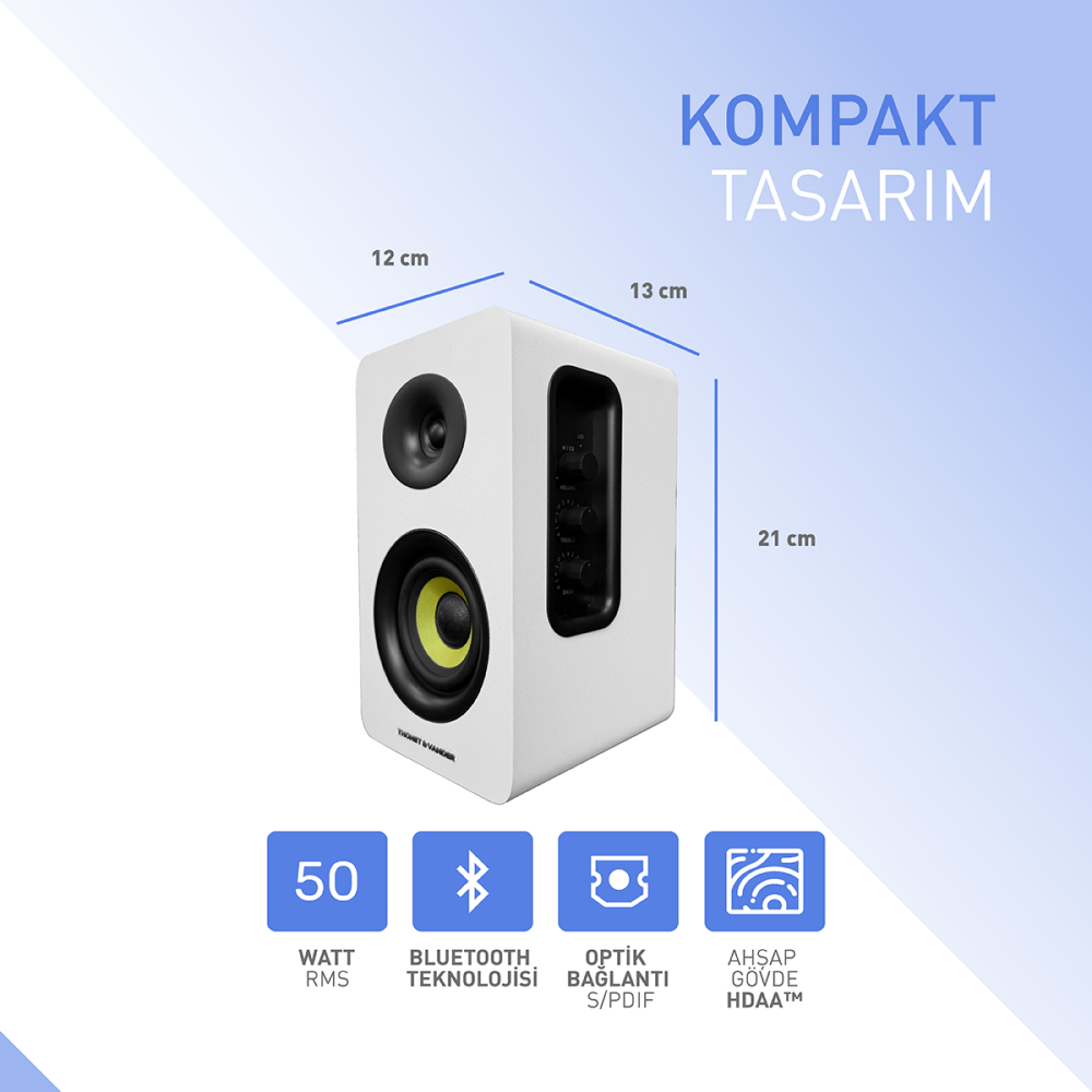 Vertrag Gen2 80W RMS Hoparlör 2.0 Bluetooh 5.0 RCA Optik Beyaz Renk